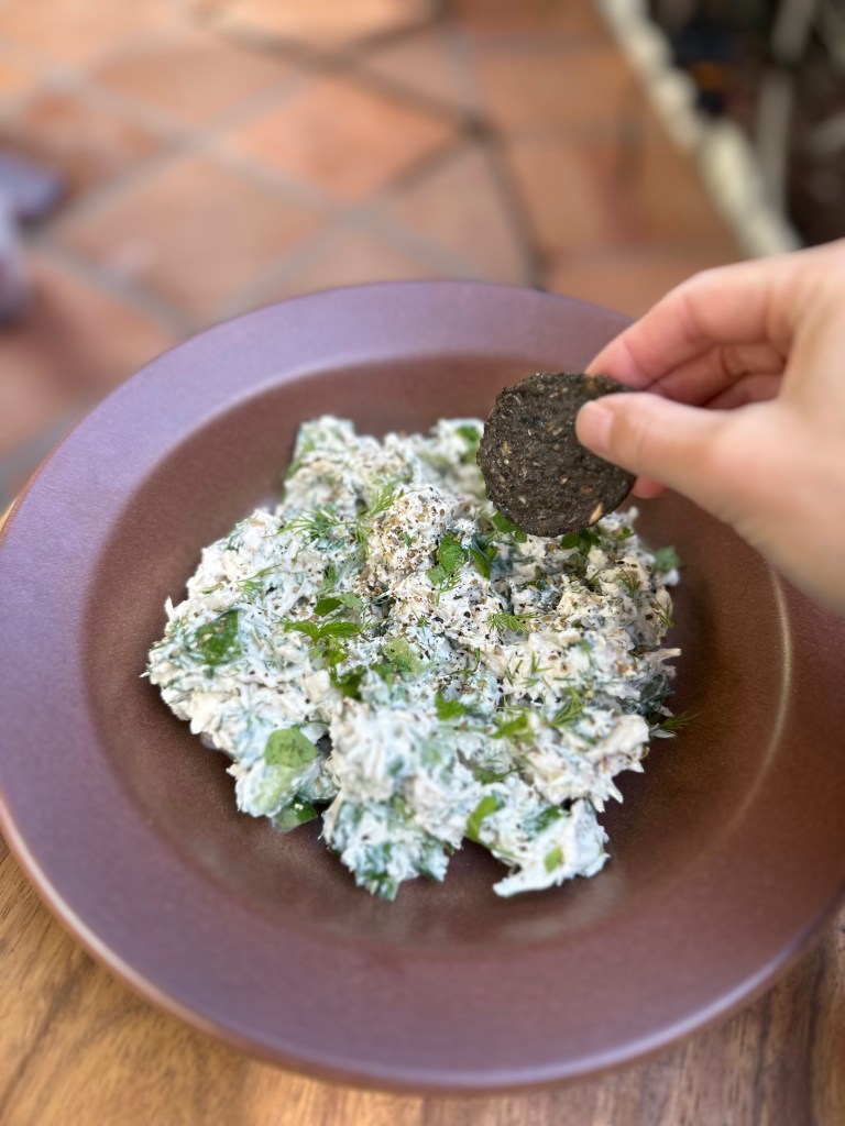- Mix together: Add in the Greek yogurt, lemon juice, dill, mint, tahini, and a pinch of salt and pepper. Stir well until everything is smooth and combined.