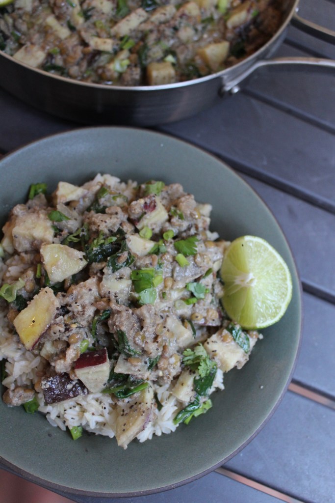 Cozy up with a bowl of this Tahini Lentil Curry, featuring tender Japanese sweet potatoes and smoky roasted eggplant in a rich, creamy sauce. This hearty, plant-based dish combines the earthy goodness of lentils with the velvety texture of tahini for a comforting, nutrient-dense meal. Lentils are packed with plant-based protein and fiber, supporting digestive health and helping you feel full and energized. They’re also a great source of iron, folate, and magnesium, promoting heart health, steady energy, and healthy blood flow. Japanese sweet potatoes add a subtle sweetness, and the eggplant lends a rich depth to every bite. Perfect for meal prep or a cozy dinner, this curry warms you from the inside out. Serve it over rice or with warm naan for a wholesome, satisfying meal!